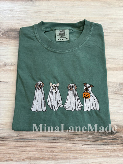 Dog Ghost Comfort Colors Tee, Halloween Embroidered Tee, Fall T-Shirt, Spooky Season, Embroidered Tee, Puppy Ghost Embroidered Shirt, Shirt