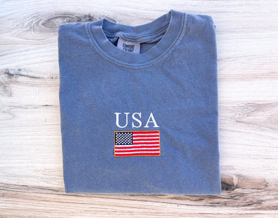 America Comfort Colors Tee, USA Shirt, 4th Of July T-Shirt, Embroidered Tee, Embroidered Shirt, Custom Shirt, Summer Shirt, Custom Tee, Cute