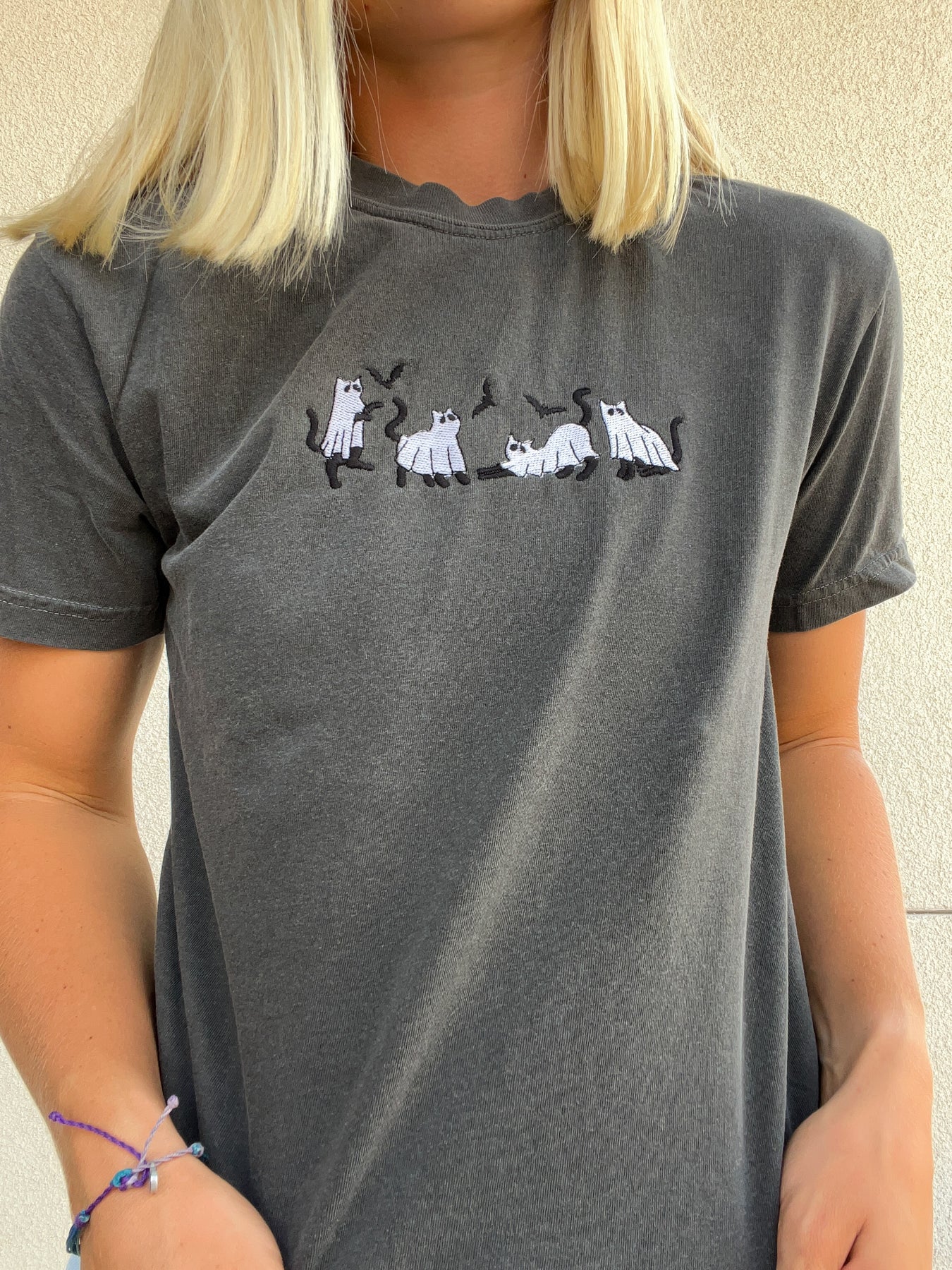 Washing instructions: machine wash cold with shirt inside out. Hang to dry or lay flat. Do not wash with items that may pull or snag the embroidery.